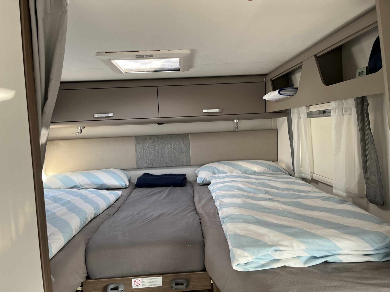 geräumiges Längsbett, geteilt oder volle Breite